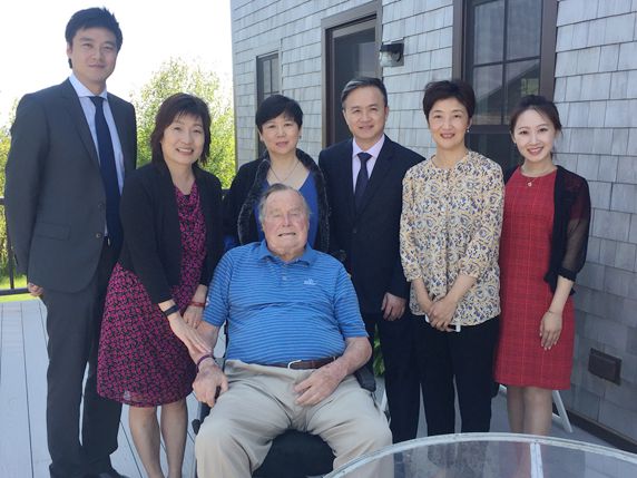 8月9日,李小林会长和中国驻纽约总领事章启月在缅因州肯尼邦克波特市看望93岁高龄的美国第41任总统乔治 H. W. 布什。