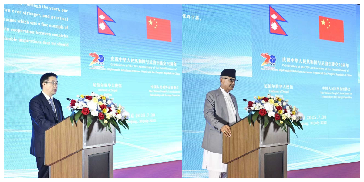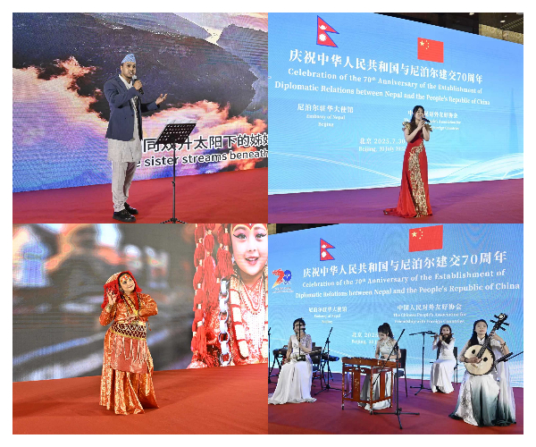 7月30日,中国人民对外友好协会与尼泊尔驻华使馆在京共同举办庆祝中国与尼泊尔建交70周年招待会。全国人大常委会副委员长肖捷出席。中联部副部长孙海燕、中国政府欧洲事务特别代表卢沙野、博鳌亚洲论坛秘书长张军、中国人民对外友好协会副会长卢向东、中央军委国际军事合作办公室副主任张保群、尼泊尔驻华大使奥利以及中尼两国各界代表和部分国家驻华使节等200余人出席活动。肖捷副委员长与奥利大使共同点亮尼泊尔传统吉祥灯,并为两国建交70周年纪念封揭幕,卢向东副会长和奥利大使分别致辞。