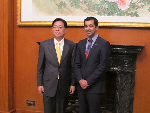 6月24日,谢元副会长会见了苏格兰地方政府政务部长胡穆萨·尤萨夫一行。我驻英国爱丁堡总领事李瑞佑陪同会见。