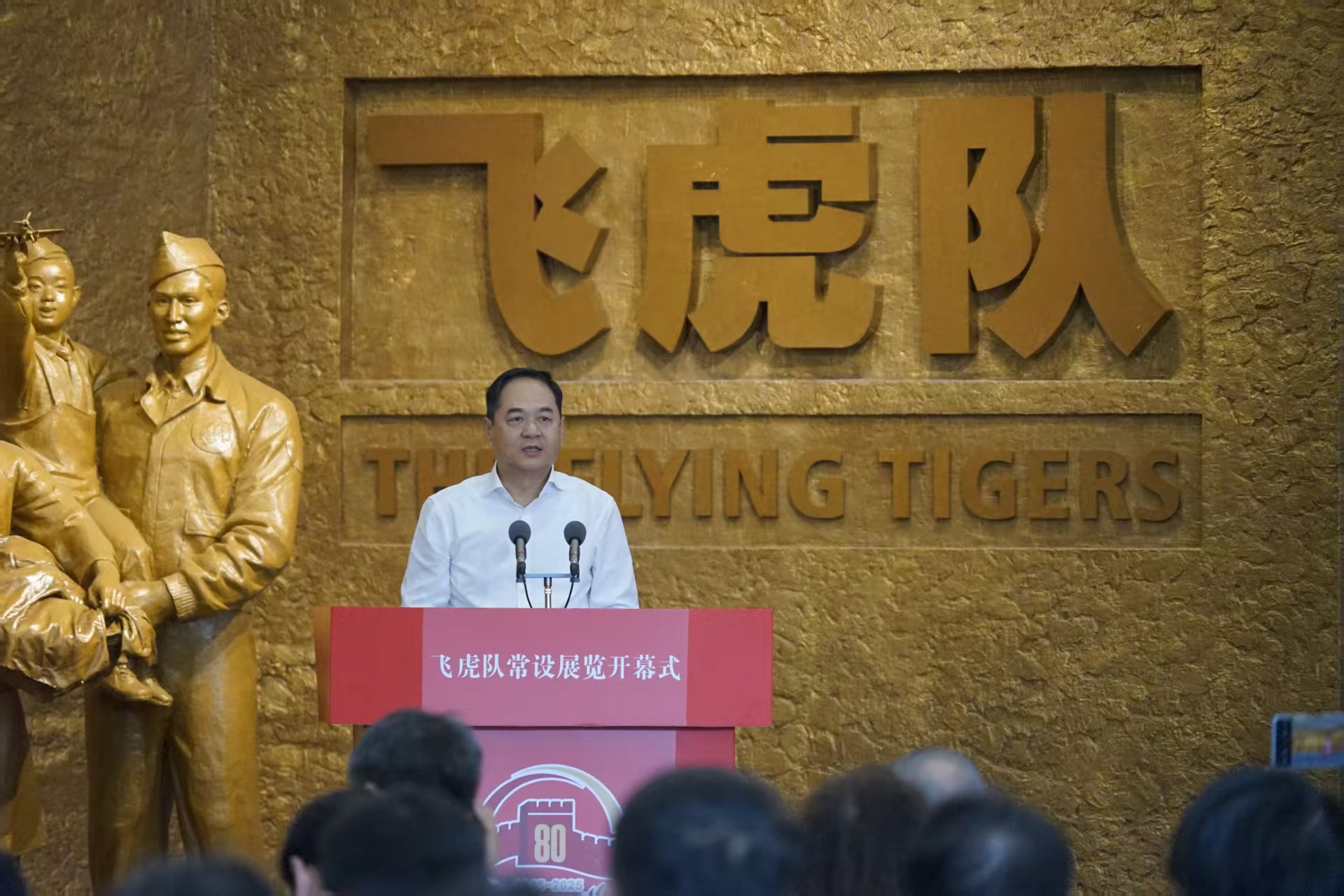 为纪念中国人民抗日战争暨世界反法西斯战争胜利80周年,广西壮族自治区人民政府、中国人民对外友好协会和国家文物局于9月7日在柳州市共同举办飞虎队常设展览开幕式活动。广西壮族自治区党委书记、自治区人大常委会主任陈刚致辞并宣布展览开幕,自治区主席韦韬主持开幕式。中国人民对外友好协会会长杨万明出席开幕式并致辞,第十四届全国政协常委、文化和文史委员会委员李群,自治区党委常委、宣传部部长陈奕君,自治区副主席、柳州市委书记谭丕创,国家文物局副局长解冰,美中航空遗产基金会主席格林等出席开幕式,美国飞虎队历史委员会等友好组织代表,飞虎队和杜立特航空队老兵后裔亲属代表、在柳美籍教师及留学生等中美双方共约300位嘉宾出席活动。