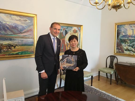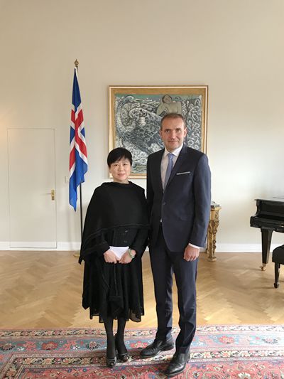 李小林会长此行是应冰岛中国文化协会邀请访问冰岛,驻冰岛大使张卫东、冰中文协主席赫尔加松陪同李会长参加了会见。