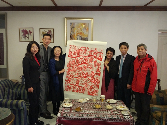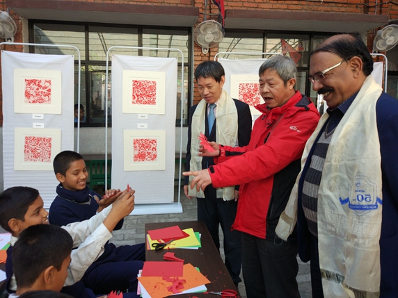 “视觉讲述中国——中国民间艺术展”尼泊尔巡展启动仪式于8日上午在加德满都举行。该展还将在尼泊尔国家博物馆等地巡回展出。为配合展览,文化工作组携两位陕西剪纸艺术家、中国民间美术工艺大师访问当地小学并为学生讲授剪纸艺术,进行互动,受到校方和同学们的欢迎。工作组与尼泊尔文化艺术界朋友就中尼两国开展音乐、佛教和美术交流进行了会谈,双方同意建立两国文化艺术交流机制。