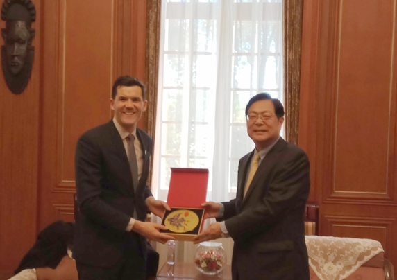 美大部副主任郝忠伟、惠灵顿市政府首席执行官凯文·莱弗里等会见时在座。