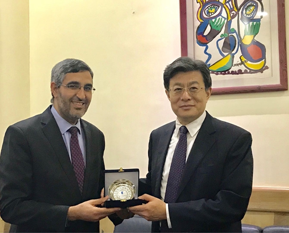 李希奎秘书长与卡萨布兰卡市市长阿卜杜勒阿齐兹·奥马里互赠纪念品