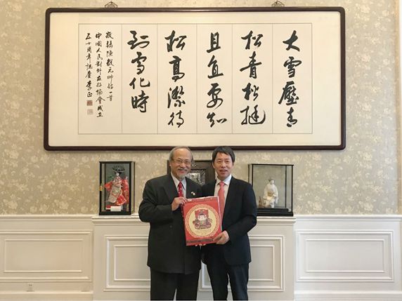 日本驻华使馆公使衔参赞川上文博、日中友好文化交流促进会事务局长远藤孝子、我会文化交流部季伟副主任陪同会见。