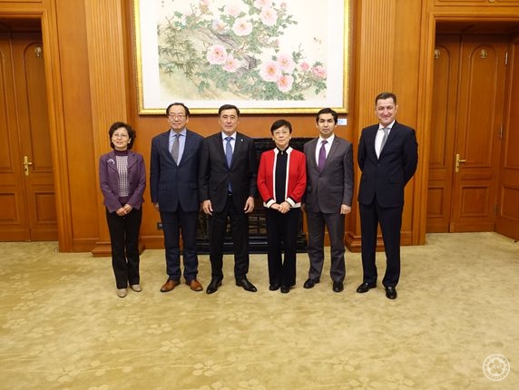 宋敬武副会长、欧亚部副巡视员胡春梅、上合组织副秘书长罗光明和卓农会见时在座。