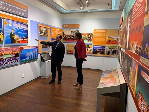 会见前,在宋敬武副会长和欧亚部主任沈昕的陪同下,布拉图舍克副总理率团参观了我会会史展,详细了解我国民间外交的发展历程。