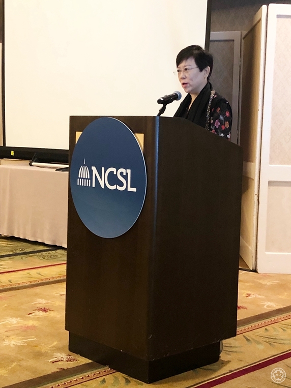 美国全国州议会会议执委会全体大会代表认真聆听李小林会长讲话