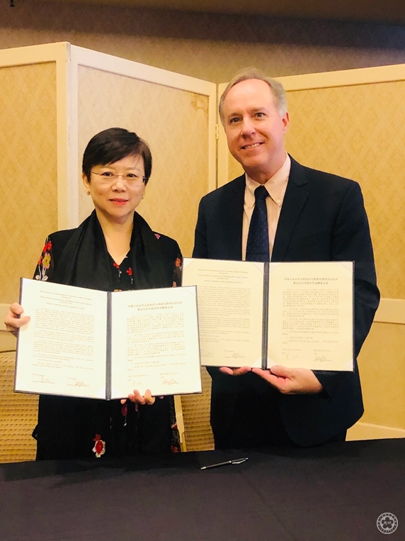 李小林会长与美国全国州议会会议主席沃斯签署《中国人民对外友好协会与美国全国州议会会议推动友好交流合作谅解备忘录》