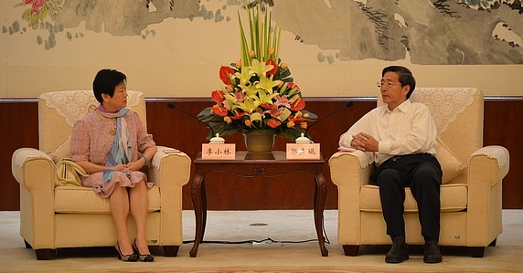 7月18日上午,李小林会长出席2012广西国际友城交流大会,发表致辞,并与广西自治区党委书记郭声琨就开展国际友城工作进行深入交流。