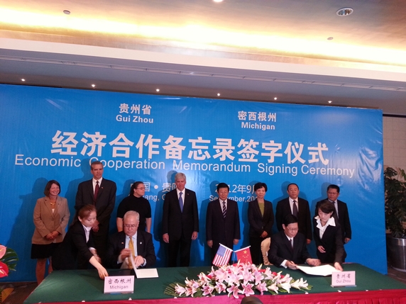 应中国人民对外友好协会邀请,美国密歇根州州长里克·斯奈德率大型经贸代表团约50人于9月19日至27日访问上海、杭州、贵阳、武汉和成都。访华期间,斯奈德州长出席了中国西部国际博览会、密歇根州驻华代表处(上海)揭牌仪式,分别拜会了浙江省副省长朱从玖、贵州省省长赵克志、湖北省省长王国生和四川省副省长魏宏。密歇根州还与贵州省签署了《经济合作备忘录》。