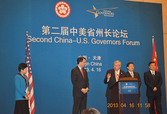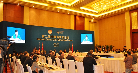 中美省州长论坛根据中美两国元首共识于2011年成立,是中美两国加强地方政府合作的重要开创性举措。此次参加论坛的中美省州长有:中国天津市市长黄兴国、河北省省长张庆伟、黑龙江省代省长陆昊、福建省省长苏树林和广西壮族自治区代主席陈武以及美国艾奥瓦州州长布兰斯塔德、威斯康星州州长沃克和弗吉尼亚州州长麦克唐纳。中美双方代表就“中美地方政府合作”及“共享环境治理经验”两大议题进行了探讨。双方一致认为,中美两国地方在相关领域面临相同或相近的机遇和挑战,拥有广阔合作空间。双方应把握机遇,推进合作,更好地促进两国地方发展,并为中美建设合作伙伴关系贡献力量。