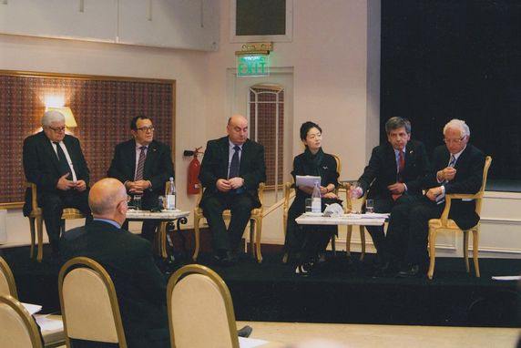 专家团访马期间,我驻马大使蔡金彪和马中友协主席卡莱亚分别宴请了代表团。卡希与我会合作于2014年在马耳他举办欧洲对华友好组织大会,还希望我会能介绍更多的中国艺术家和文化界人士到马耳他举办艺术展览或开展其它形式的文化交流活动。专家团的世界华人协会主席胡智荣、北京高和华泰节能环保科技有限公司董事长程森华、北京翰皇皮革有限公司总经理辛玉波及马方谢瑞董事长、罗宝龙业务发展主管等出席了中马企业家座谈会,双方就开展在房地产业、酒店娱乐业、皮革产业等领域的交流合作交换了看法,共同表示希望进一步加强联系,促进双方有效合作。