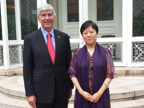 9月13日,李小林会长会见了美国密歇根州州长里克·斯奈德访华代表团一行。李会长表示密歇根州与中国之间拥有巨大的合作机会,全国友协愿为促进双方友好交往与务实合作搭建桥梁。李会长希望与斯奈德州长所在的美国大湖区州长协会合作,推动大湖区州长与中国中西部地区省长进行对话,寻求互利合作机遇。斯奈德州长感谢李小林会长的会见,表示愿意协助推动中美省州长交流,并希望未来同中国在经贸、旅游、农业等领域深化合作。