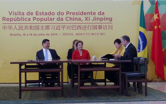 7月17日,正在巴西访问的国家主席习近平与巴西总统罗塞夫共同出席了全国友协友城联合会与巴西州议会全国联盟框架合作协议的签字仪式。全国友协会长李小林与巴西州议会全国联盟主席谢弗分别代表各自组织在协议书上签字。