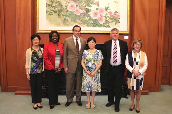 9月5日,中国人民对外友好协会会长李小林会见了美国华盛顿市长文森特·格雷一行。李会长向格雷介绍了我会近年来与美合作的主要项目,其中包括中美友好城市大会、中美省州长论坛以及中美市长论坛等。