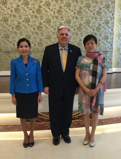 6月1日,李小林会长会见美国马里兰州州长拉里·霍甘一行。随行人员包括州长夫人由美·霍甘,马里兰州州务卿约翰·沃本史密斯等。