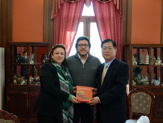 12月18日,中国人民对外友好协会副会长谢元会见了哥伦比亚著名作家、语言学家圣地亚哥·冈博亚先生和哥驻华大使卡门萨·哈拉米略女士。