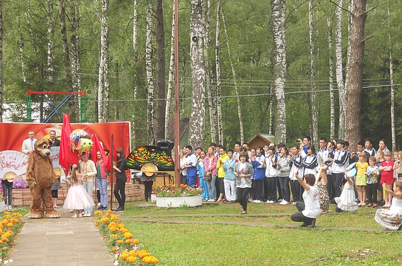 在弗拉基米尔州《伊卡鲁斯》青少年营地中俄学生大联欢为此次活动拉开序幕。在热烈隆重的欢迎仪式之后,中俄青少年进行了各种体育比赛、游戏、在音乐晚会上同台演出各具民族特色的文艺节目。中俄青少年朋友们感受到彼此的真诚热情,结下了深厚的友情。此次活动还得到了州政府的支持。