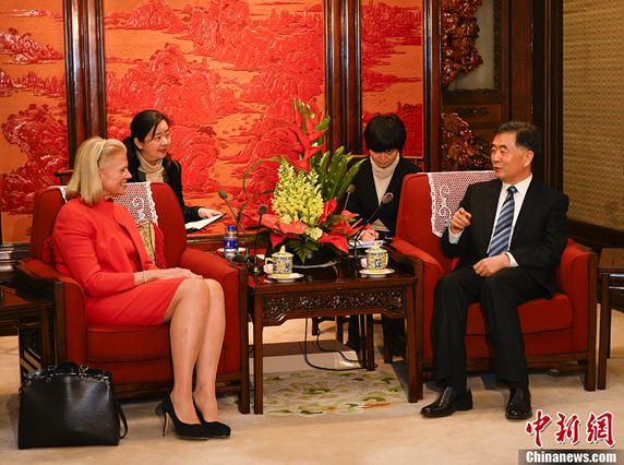 2月13日,中国国务院副总理汪洋在北京中南海紫光阁会见了美国国际商业机器公司(IBM公司)董事长、总裁兼首席执行官罗睿兰。全国友协会长李小林出席了会见。