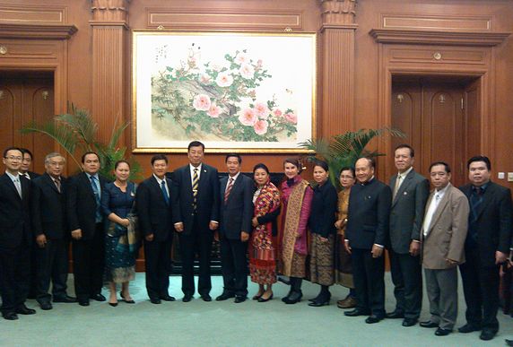 应我会邀请,老挝中国友好协会会长、老人民革命党中央委员会委员、老政府办公厅部长兼主任辛拉冯·库派吞率老中友协代表团及企业家一行21人于2012年12月16日至22日访问了北京、青岛和云南。全国人大常委会副委员长周铁农、中国东盟协会会长顾秀莲、中老友协会长武韬、云南省副省长高树勋、青岛市人大主任王文华分别会见或宴请了代表团,冯佐库副会长与代表团进行了工作会谈。代表团还参观了青岛啤酒、海尔集团、青岛橡胶谷产业园区、北京温州企业商会和云南电网公司等企业,就今后开展中老经贸合作进行了探讨并达成了部分合作意向。