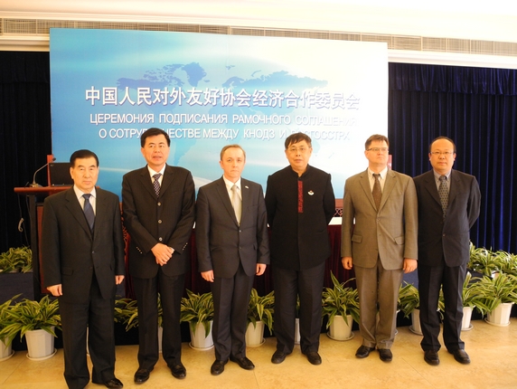 俄罗斯驻中国商务代表处副代表谢佐夫先生就中俄两国经济合作的良好前景发言,并对签约仪式表示祝贺;中俄友协会长陈昊苏同志、中国保险行业协会前会长王宪章、中国人民财产保险股份有限公司党委副书记副总裁郭生臣先生等出席签字仪式。