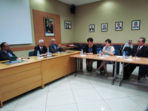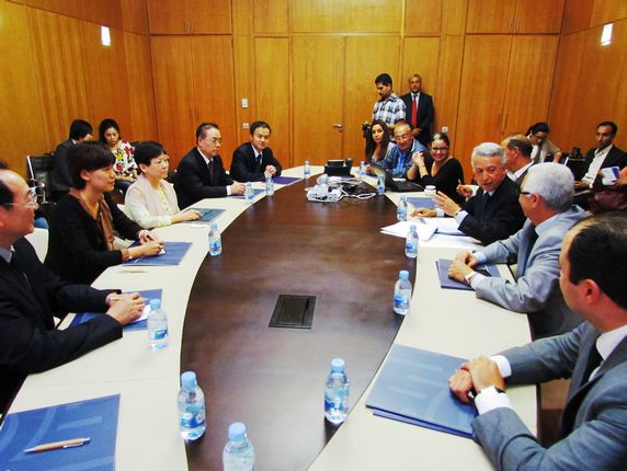 代表团与摩洛哥中国友好交流协会进行了工作会谈。会谈结束后,摩洛哥高等教育、科研与干部培训大臣拉赫森·道迪和摩洛哥互助、妇女、家庭与社会发展大臣巴西玛·哈卡维出席了为代表团举办的欢迎午餐。