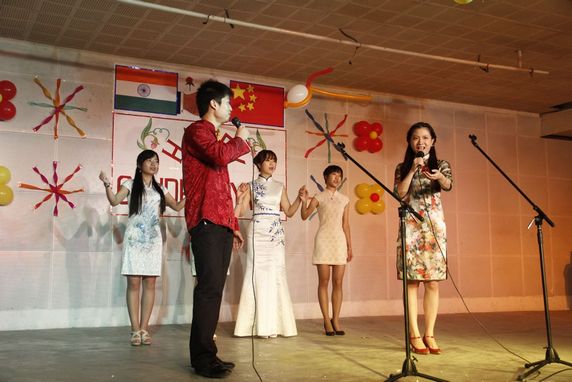 和平节期间适逢我国庆,主办方特在10月1日举办“中国日”晚会,各国青年准备了丰富多彩的文艺节目向中国国庆献礼,中国代表团表演的京剧和歌曲大连唱将晚会推向高潮。代表团还参加了印度中国之友协会举办的中国国庆庆祝大会。