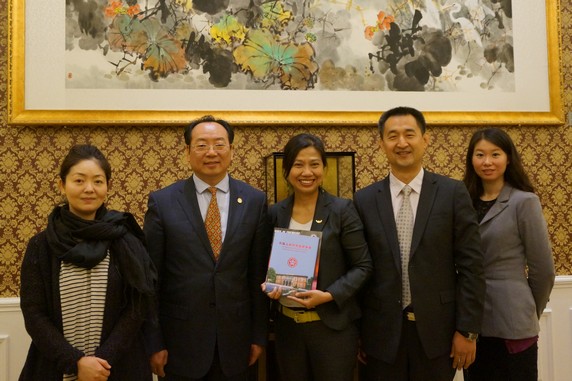 4月11日,欧亚部宋敬武主任会见并宴请了应我会邀请来访的世界城市和地方政府联合组织(简称城地组织)亚太区秘书长伯尔纳提亚女士,双方就2014年城地组织亚太区开展相关活动及未来发展深入交换意见。伯尔纳提亚女士系就任亚太区秘书长后首次应我邀请访华。