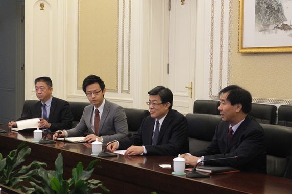 2014年3月11日上午,李希奎秘书长在我会会见了法国达索猎鹰公司总裁兼首席执行官候颂咏(Jean Rosanvallon)、国际销售部高级副总裁贾可博(Jean-Michael)、销售总监欧力伟(Olivier DeLapeyriere)及以色列DStone公司主管Dror Kohn、副总裁Yair Bar等。