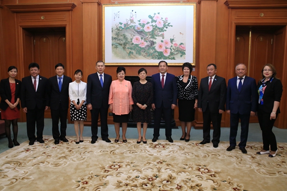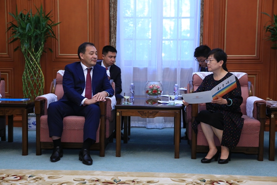 9月18日,李小林会长会见了以哈萨克斯坦人民大会副主席叶·图格让诺夫为团长的哈人民大会和长老会代表团。