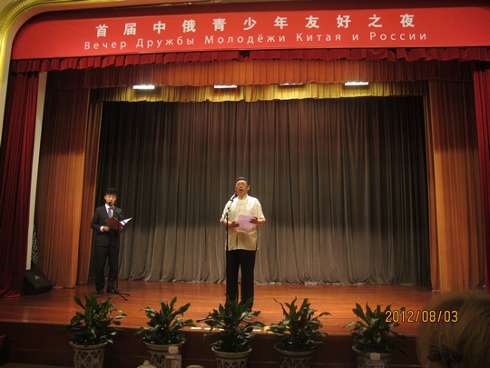 8月3日晚,我会以中俄友协名义在友协礼堂举办了首届“中俄青少年友好之夜”活动,中俄友协会长陈昊苏出席并致辞,友协干部职工、中国儿童中心代表、天津华夏少儿艺术团代表以及首都媒体代表等共一百余人到场。