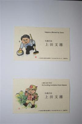 在札幌访问期间,井顿泉副会长会见了札幌市长上田文雄,双方就进一步开展各领域交流与合作坦诚交换意见。特别值得一提的是上田市长的名片,一组4张,卡通造型,别具一格。