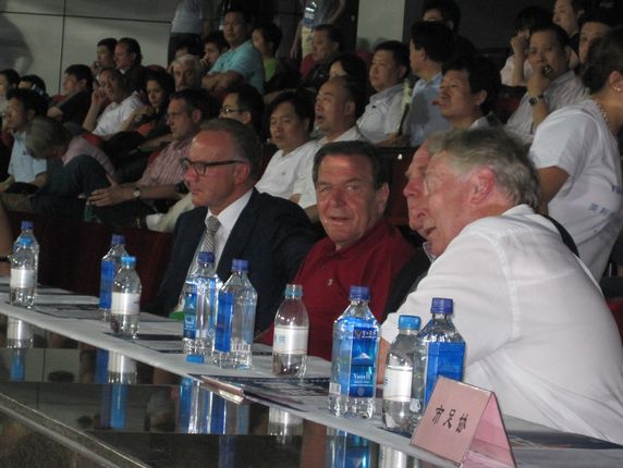 德方嘉宾观看比赛(左一为鲁梅尼格、左二为前总理施罗德)