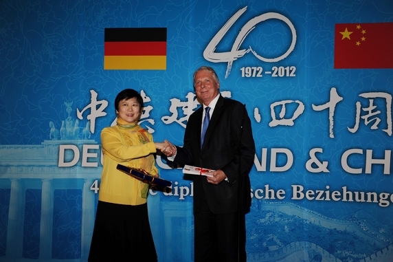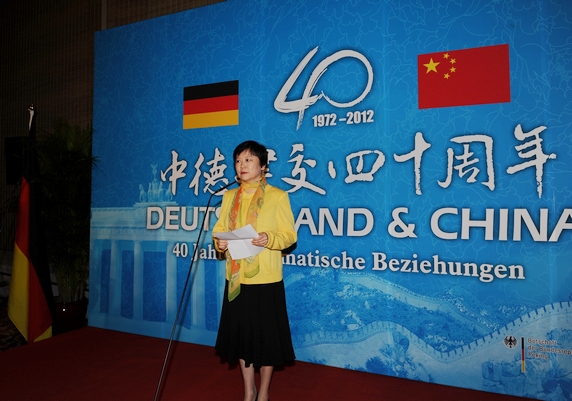 杨洁篪外长在致辞中首先转达了中国国家主席胡锦涛、国务院总理温家宝就中德建交40周年致德国总统高克、总理默克尔的热烈祝贺,向曾经为中德关系发展作出贡献的各界人士致以良好祝愿和诚挚感谢。杨洁篪表示,40年来,中德友好交流与合作从无到有、从少到多、由疏及密、出浅至深,取得丰硕成果。当前,中德合作站在新的历史起点上,双方要相互尊重、加强交往、增进互信、扩大合作,推动展望未来的中德战略伙伴关系继续全面向前发展。