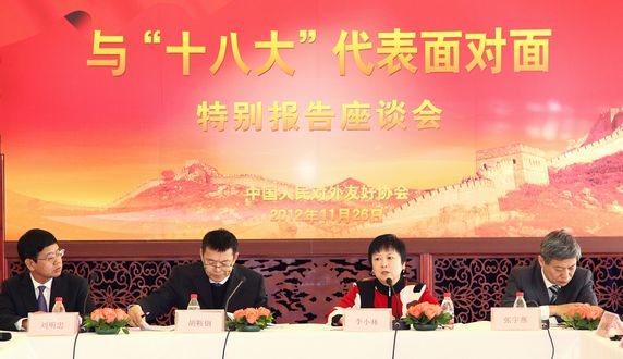 首先,四位代表从不同角度宣讲了十八大报告的主要精神。李小林会长说,胡锦涛同志在十八大报告中总结了过去十年,特别是过去五年的工作经验,对中国特色社会主义道路理论体系、制度内涵作了深刻阐述,同时指出道路是“实现途径”,理论体系是“行动指南”,制度是“根本保障”,三者统一于中国特色社会主义伟大实践。中国目前所走的道路是前无古人,后一定会有来者的道路。中国在没有任何先例可循,也没有任何完整经验可以借鉴的情况下,正在不断进行符合中国国情的科学探索。实践证明,中国特色社会主义是当代中国发展进步的旗帜,是全党全国各族人民团结奋斗的旗帜。我们决不能走封闭僵化、固守以往的老路,更不能走改旗易帜、背离社会主义基本原则的邪路,只能走改革开放、促进社会主义自我完善和发展的新路。同时她表示全国友协将坚决按照习近平总书记的要求,在民间外交方面起引领作用,公共外交方面起骨干作用,城市外交方面起桥梁作用,永远致力于和平、发展、合作、共赢的友好事业。