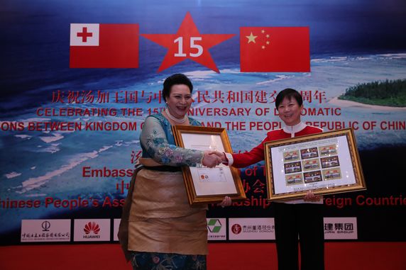 招待会上,双方嘉宾共同为中汤建交15周年纪念邮票揭幕,汤加在华留学生还献上精彩的汤加歌舞,招待会气氛祥和热烈。
