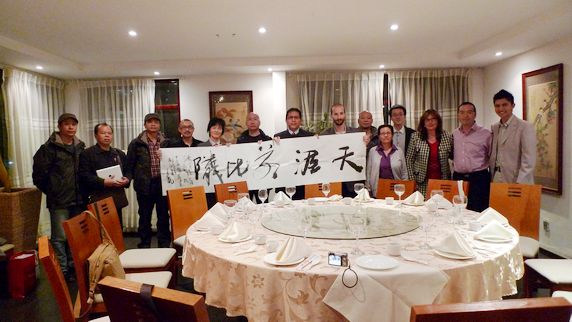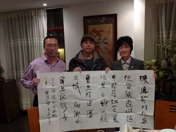 晚间,我驻厄瓜多尔大使馆设宴欢迎中国画家代表团访厄,厄外交部文化专员和厄知名画家Perugachy等十余人参加,中厄两国画家进行了亲切的艺术交流,并互赠画册,中国画家代表分别向厄外交部和我驻厄大使馆赠送书法作品。