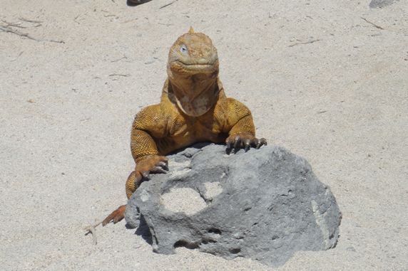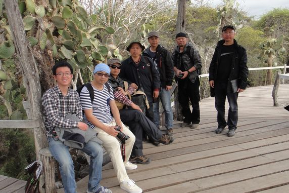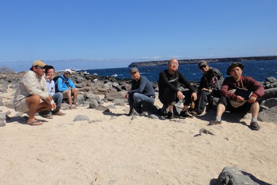 下午,代表团乘坐冲锋舟,在艇内一半进水的困难情况下,和当地向导船工齐心协力,三次抢登火山石峭壁,有惊无险登上North Seymour北西摩岛,领略加拉帕格斯群岛保护最为严格的动物天堂。大家深入了解了岛上各类植被、军舰鸟、陆鬣蜥、海鸥和海狮等珍稀动植物的生长繁殖情况和习性,对岛上自然和谐的多层次壮阔景观赞不绝口,亦对厄瓜多尔成功的自然保护措施给予高度认可。