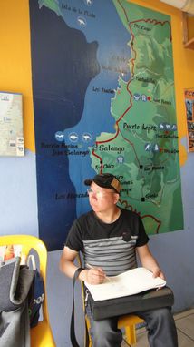 下午,代表团在海上和野生海龟和各种热带鱼类进行了亲密接触,画家纷纷表示厄大陆岛屿和加拉帕格斯群岛有很大不同,各有魅力,值得细细品味。傍晚,画家深入当地渔村写生,和土著村民进行了友好交谈。