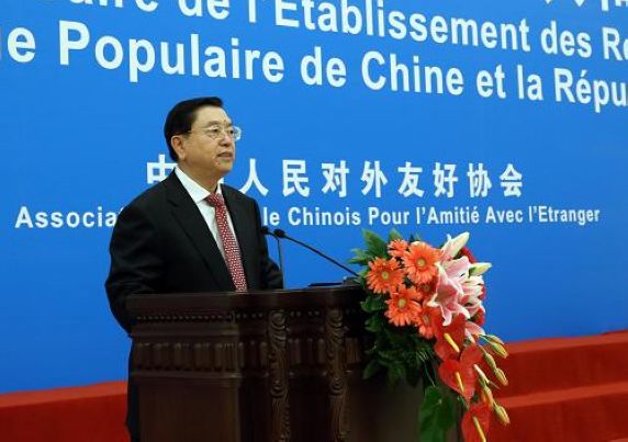 张德江在致辞中表示,50年前的今天,中法两国政府宣布建立大使级外交关系。这是中法两国人民交往史上具有里程碑意义的重大历史事件。中法建交开启了两个伟大国家友好关系的新纪元,树立了不同社会制度国家和平共处的新典范,对国际战略格局产生了重大而深远的影响。