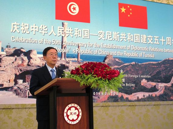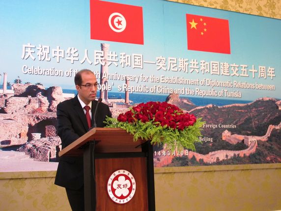 2014年3月20日,中国人民对外友好协会、突尼斯驻华使馆联合举行招待会,庆祝中国与突尼斯建交50周年、突尼斯独立58周年。第十一届全国政协副主席、中国非洲人民友好协会会长阿不来提·阿不都热西提、外交部副部长张明、全国友协副会长冯佐库以及来自外交部、中联部、商务部、文化部等相关单位负责人和中国阿拉伯友好协会领导及媒体,突尼斯驻华大使塔雷克·阿姆里及使馆全体外交官、在京侨民代表等约120人出席了招待会。