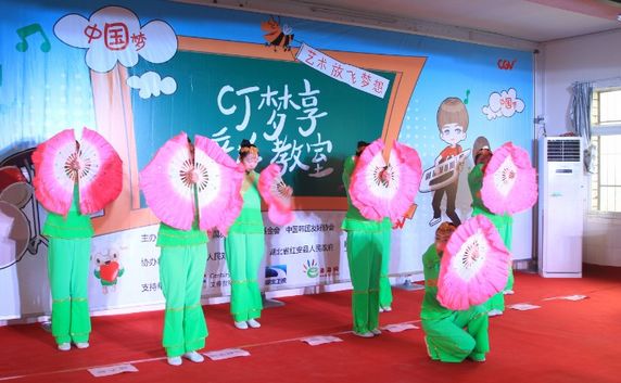 活动中,与会领导、明星志愿者和孩子们一起张贴梦想树、绘制梦享T恤,孩子们也展现了自己的才艺。丰富多彩的互动,促进了中韩青少年间的文化交流和爱心传递。