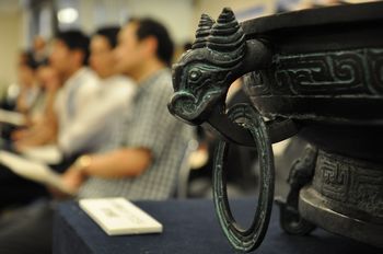 甲骨片直观地展现了汉字的初貌 青铜逨盘(复制品)