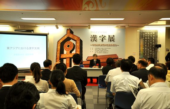 此次展览为期十一天,其间安排有专题讲座、书法展示等汉字文化系列活动。首场讲座上,日本学习院大学鹤间和幸教授以《东亚世界的汉字文明》为题,依汉字文明向东亚世界传播的三段历史分期,为现场来宾和观众介绍了汉字对日本乃至东亚的文化影响。