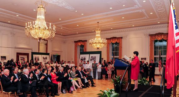 2014年7月23日,中国人民对外友好协会在位于美国加利福尼亚州约巴林达市的尼克松总统图书馆举办了“向友谊致敬——二战中美合作图片展”开幕式暨招待会。中国人民对外友好协会会长李小林、中国驻洛杉矶总领事刘健、美国大洛杉矶郡郡长安东尼诺维齐、美国尼克松总统图书馆主席兼首席执行官巴瑞鲍特、美国前总统尼克松的外孙克里斯托弗·考克斯、美国飞虎队飞行员本尼达的遗孀埃莉诺和儿子爱德华以及洛杉矶地区各界友好人士近百人出席了招待会。