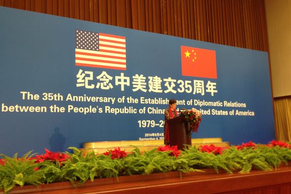 李源潮说,中美建交35年来,两国关系得到历史性发展。双方应认真落实两国领导人重要共识,坚定不移沿着构建中美新型大国关系的正确方向走下去,坚持不冲突不对抗、相互尊重、合作共赢的方针,推动中美关系在今后更加健康地发展。
