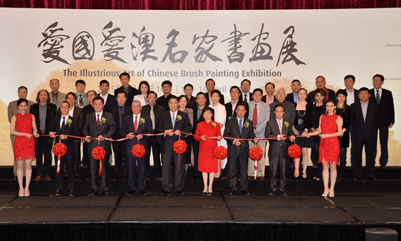 4月14日,由我会主办的“爱国爱澳 中国书画名家展”在澳门君悦酒店隆重开幕。李小林会长与澳门特区行政长官崔世安、全国政协副主席何厚铧、中央人民政府驻澳门联络办公室主任李刚、外交部驻澳门特派员公署特派员胡正跃等共同出席了开幕式并剪彩。两地艺术家和澳门各界人士出席开幕式并参观了展览。
