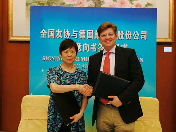 会见后,李小林会长与冯凯德副总裁共同签署全国友协与德国戴姆勒公司合作意向书。