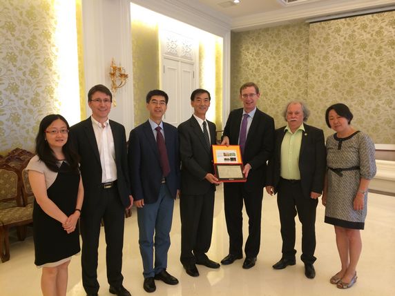 7月24日,李建平副会长在京会见了德国默克化工技术(上海)有限公司首席执行官赵赋斯博士(Dr. Alasdair Jelfs )一行。